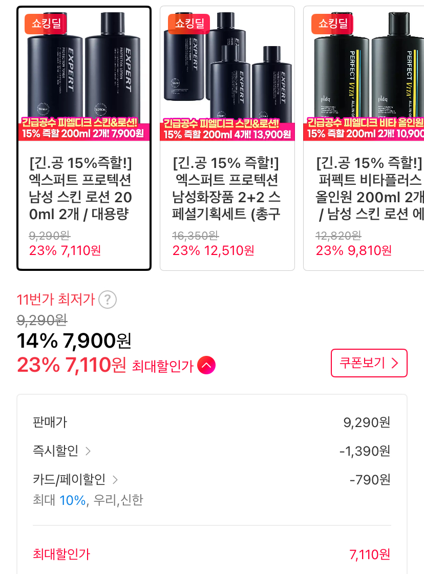 [11번가] 엑스퍼트 프로텍션 남성 스킨 로션 200ml 2개 (7,900원/무료)
