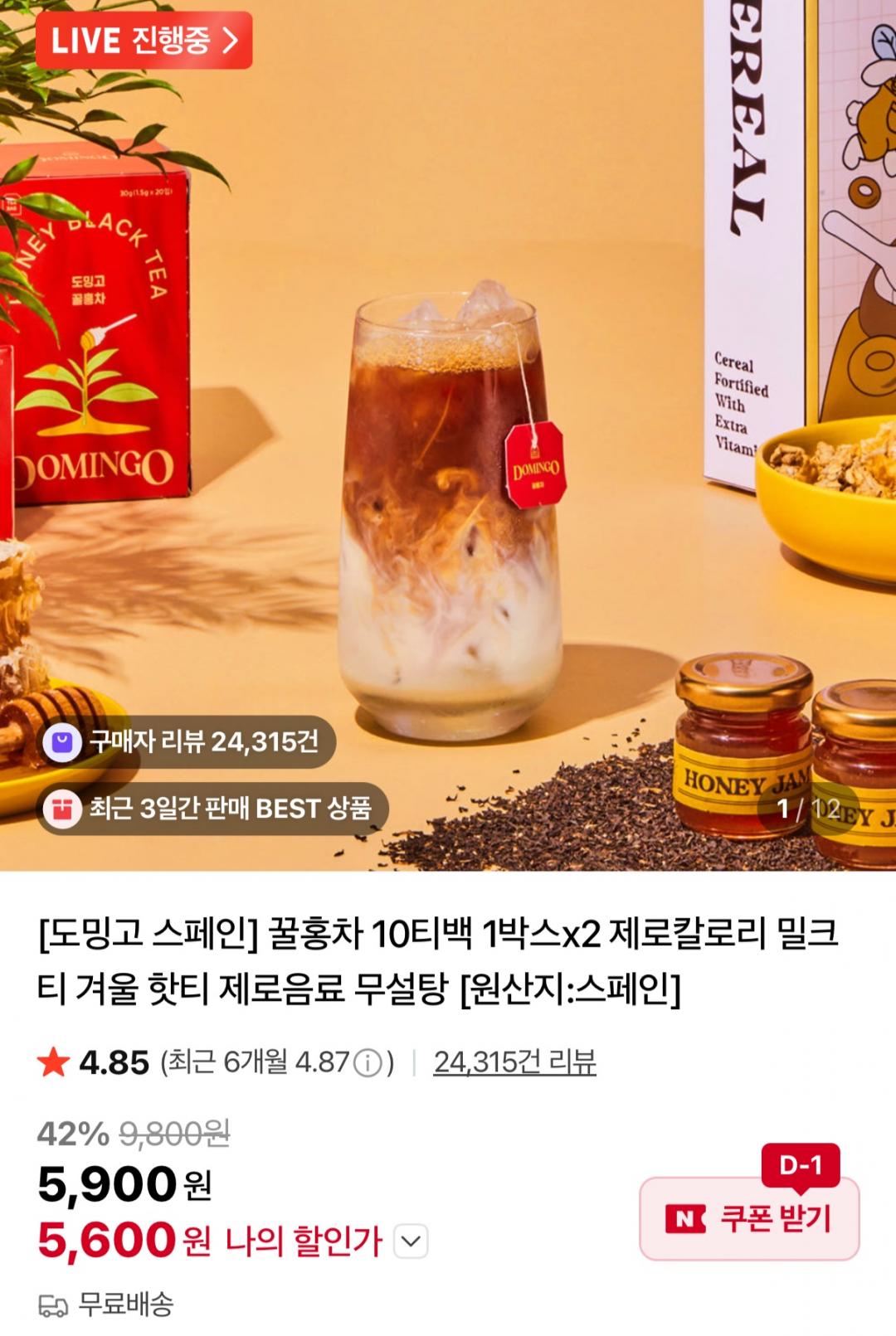 [네이버] 도밍고 꿀홍차/꿀캐모마일(총40티백) (9,400원/무료)