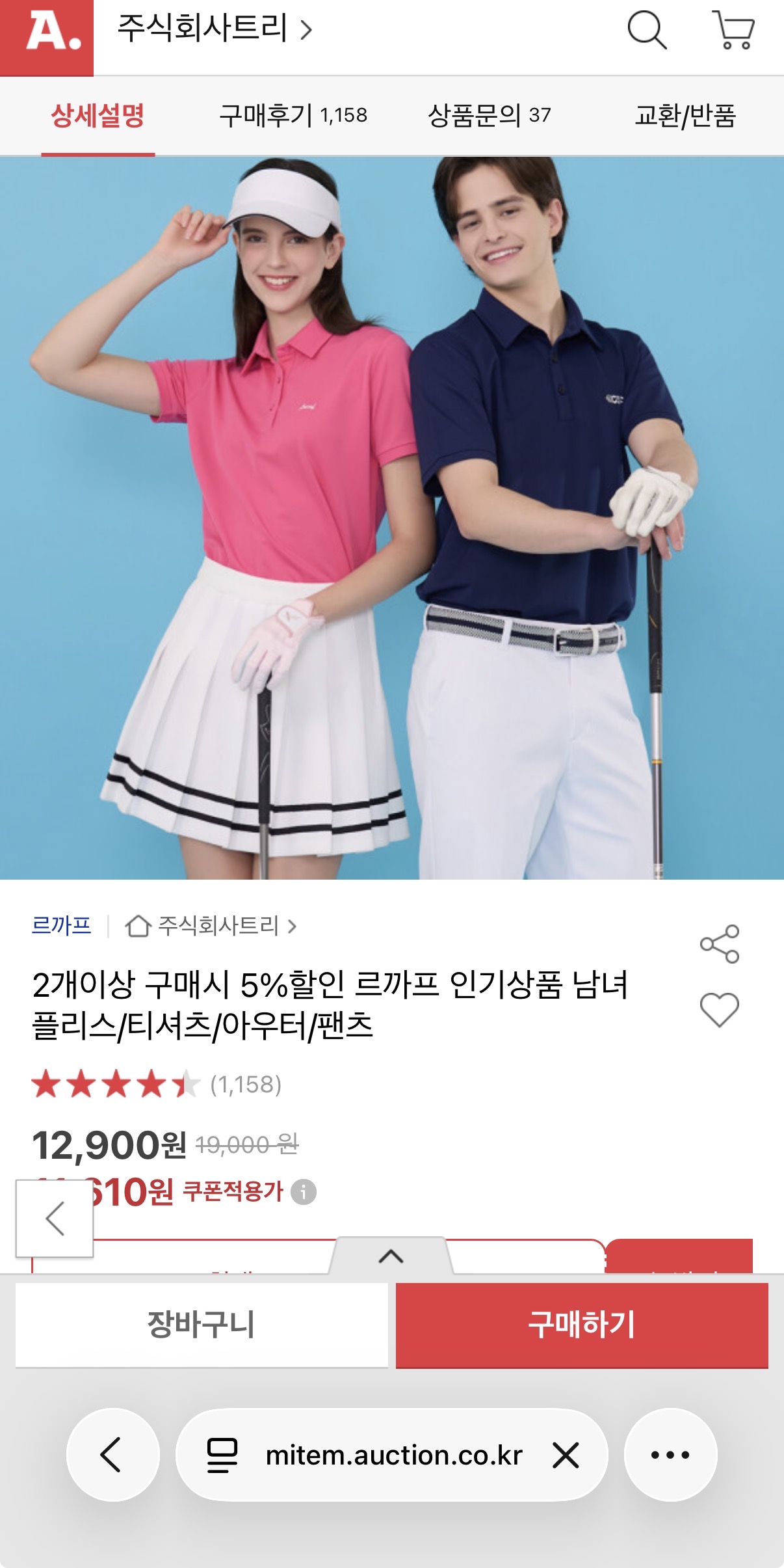 [옥션] 2개이상 구매시 5%할인 르까프 인기상품 남녀 플리스 11,610원