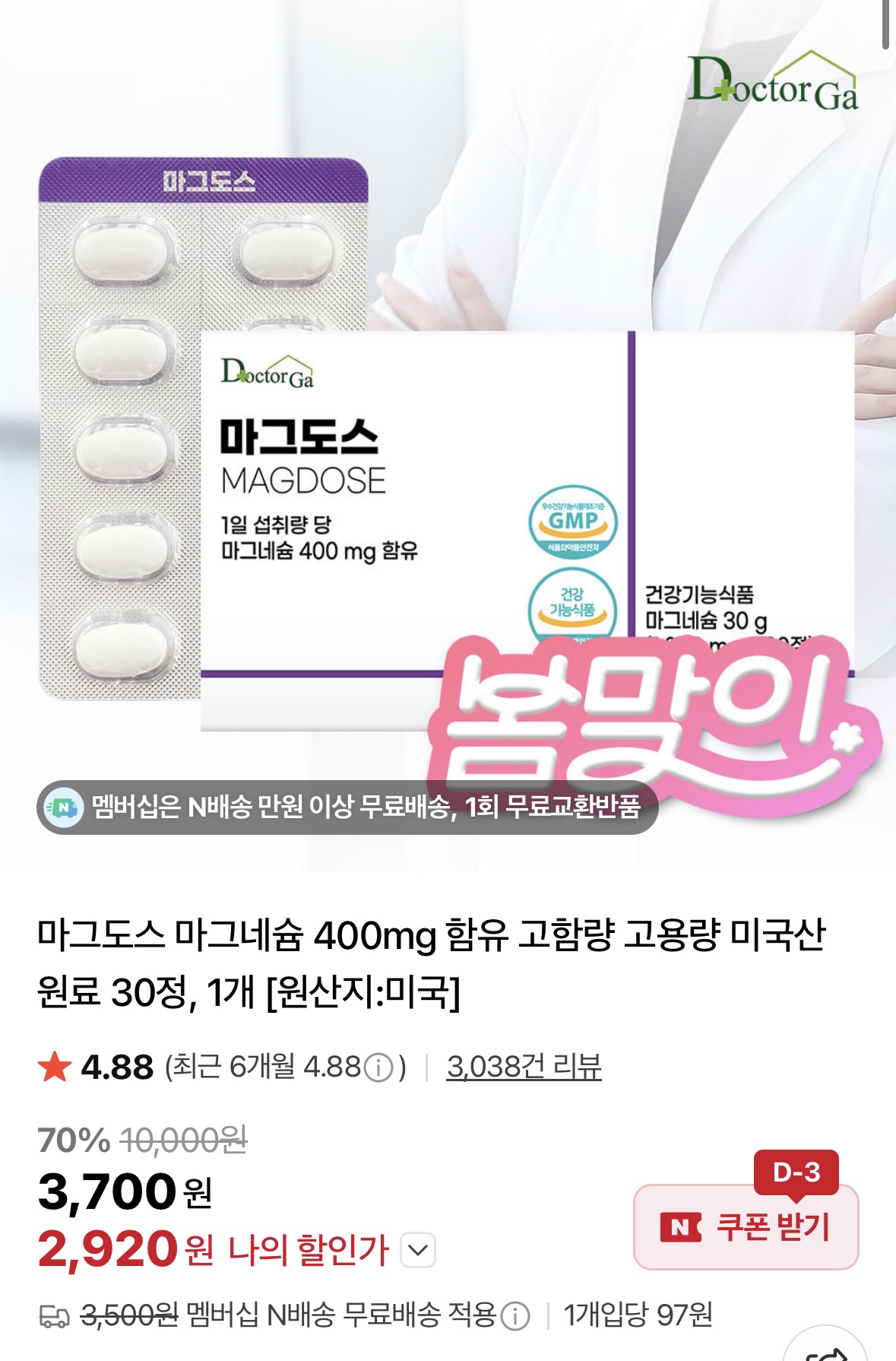[네이버]마그도스 마그네슘 400mg 30정 (2,920원/네멤무료) > 국내핫딜