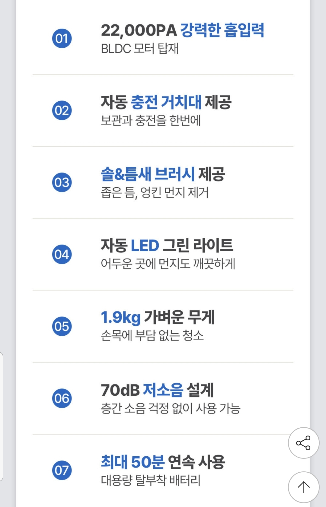 22000PA 흡입력에 무게 1.9kg 나가고 50분 사용이면 스펙은 가격대비 충분하네요