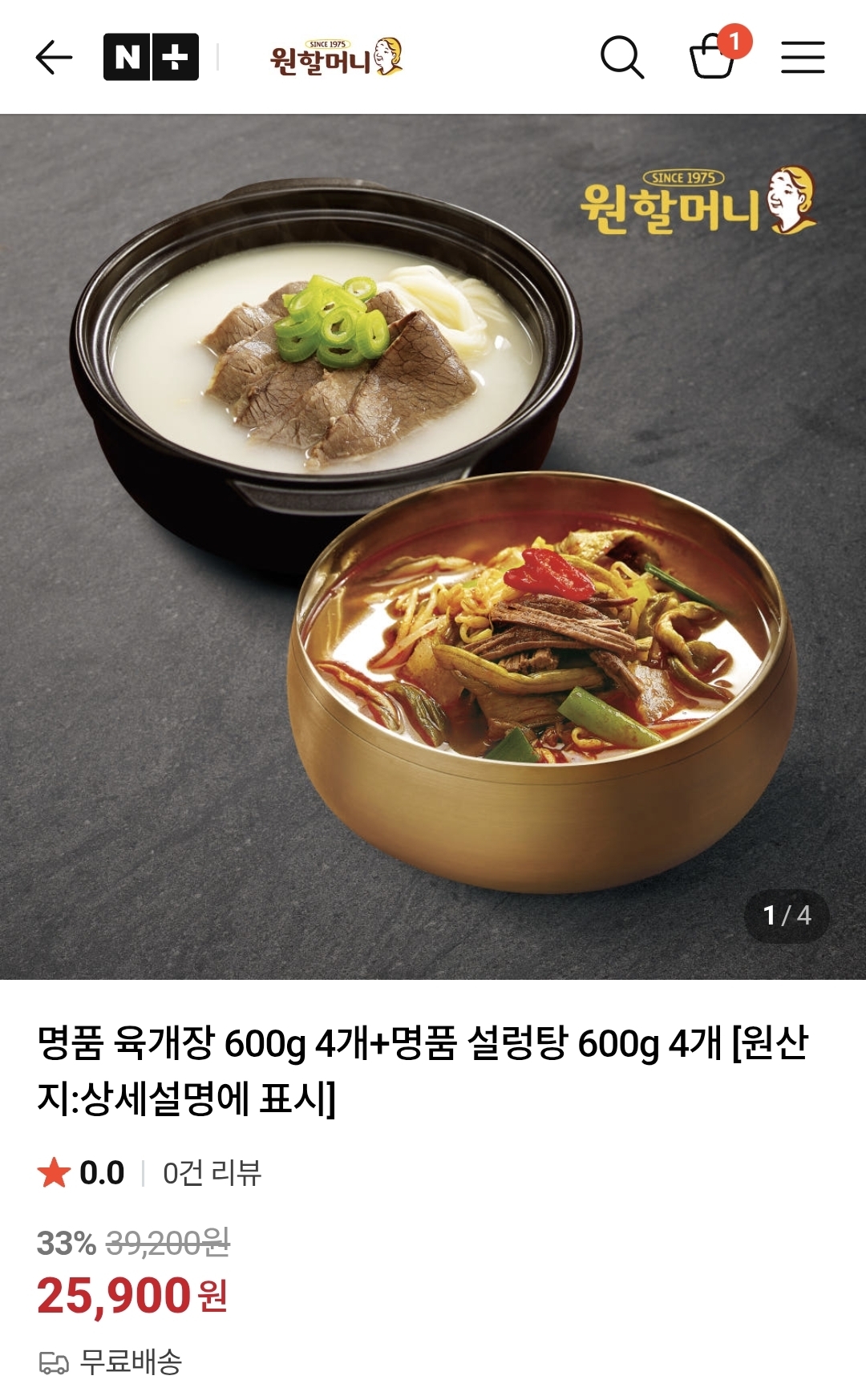 [네이버] 명품 육개장 600g 4개+명품 설렁탕 600g 4개 (25,900원/무료) > 국내핫딜