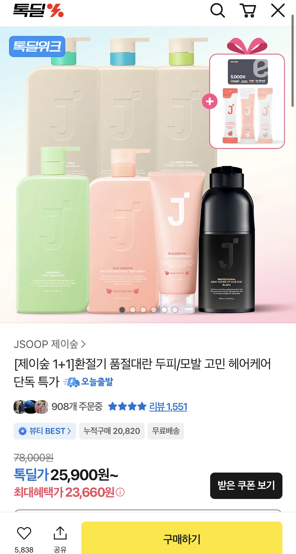 [톡딜] 제이숲 샴푸/헤어케어 1+1 샴푸 트리트먼트 모음전 (23,660원/무료) > 국내핫딜