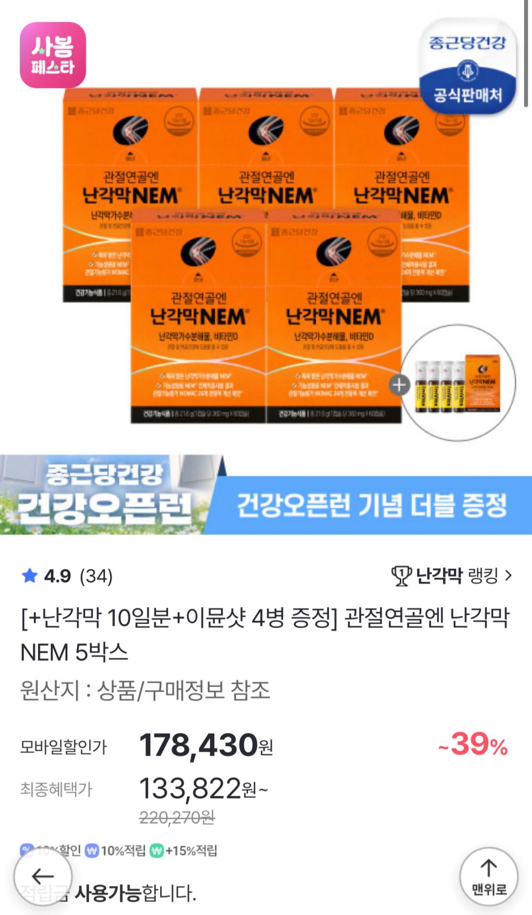 165,940원이고 여기서 구매후 적립