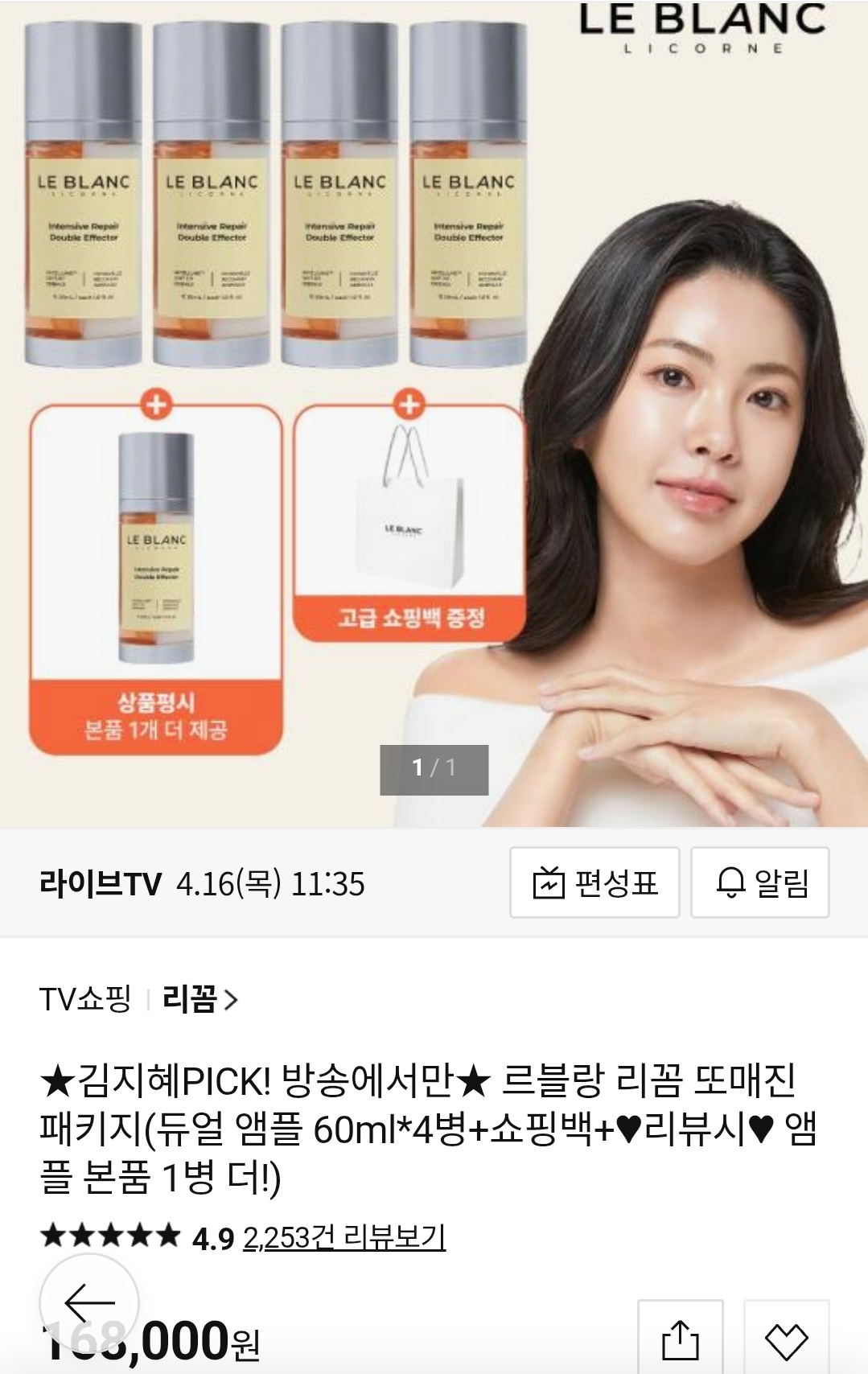 [롯데홈쇼핑]르블랑 리꼼 듀얼 앰플 60ml*4병+1병 총5병(168,000원/무배) > 국내핫딜