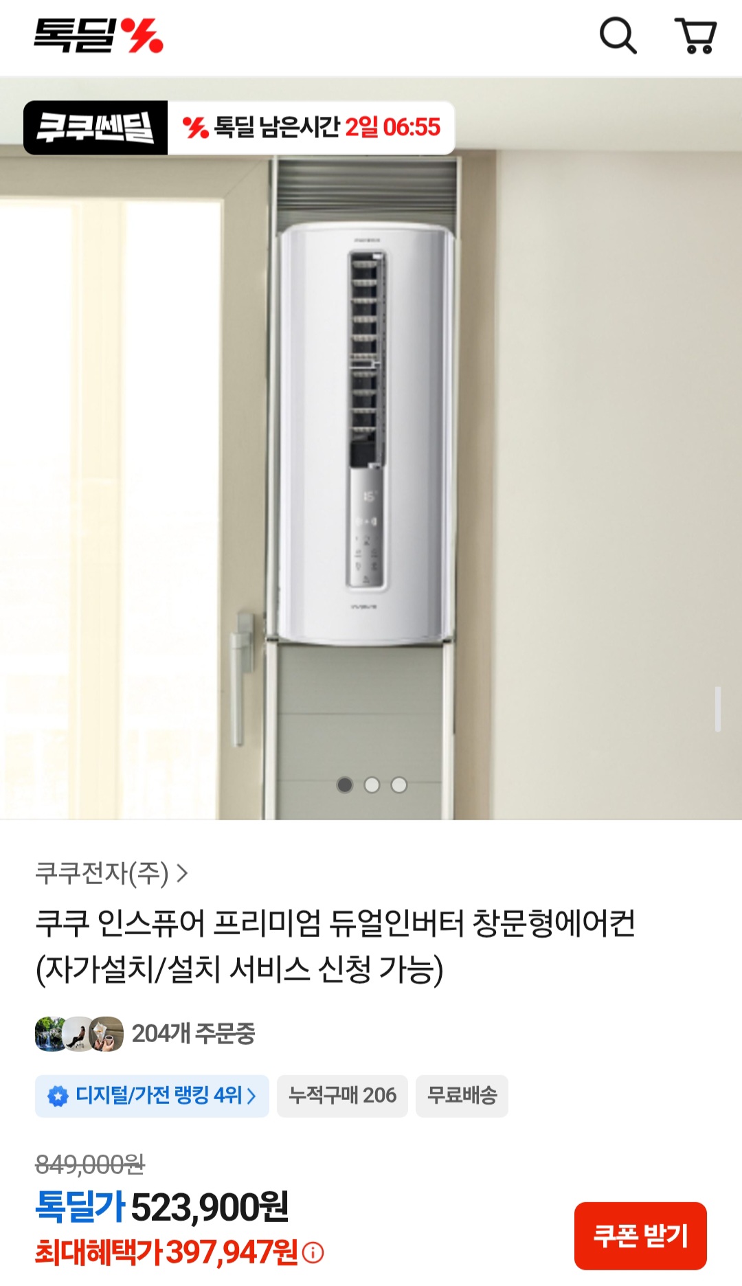날이 급격히 더워지니 창문형에어컨 톡딜 바로올라오네요