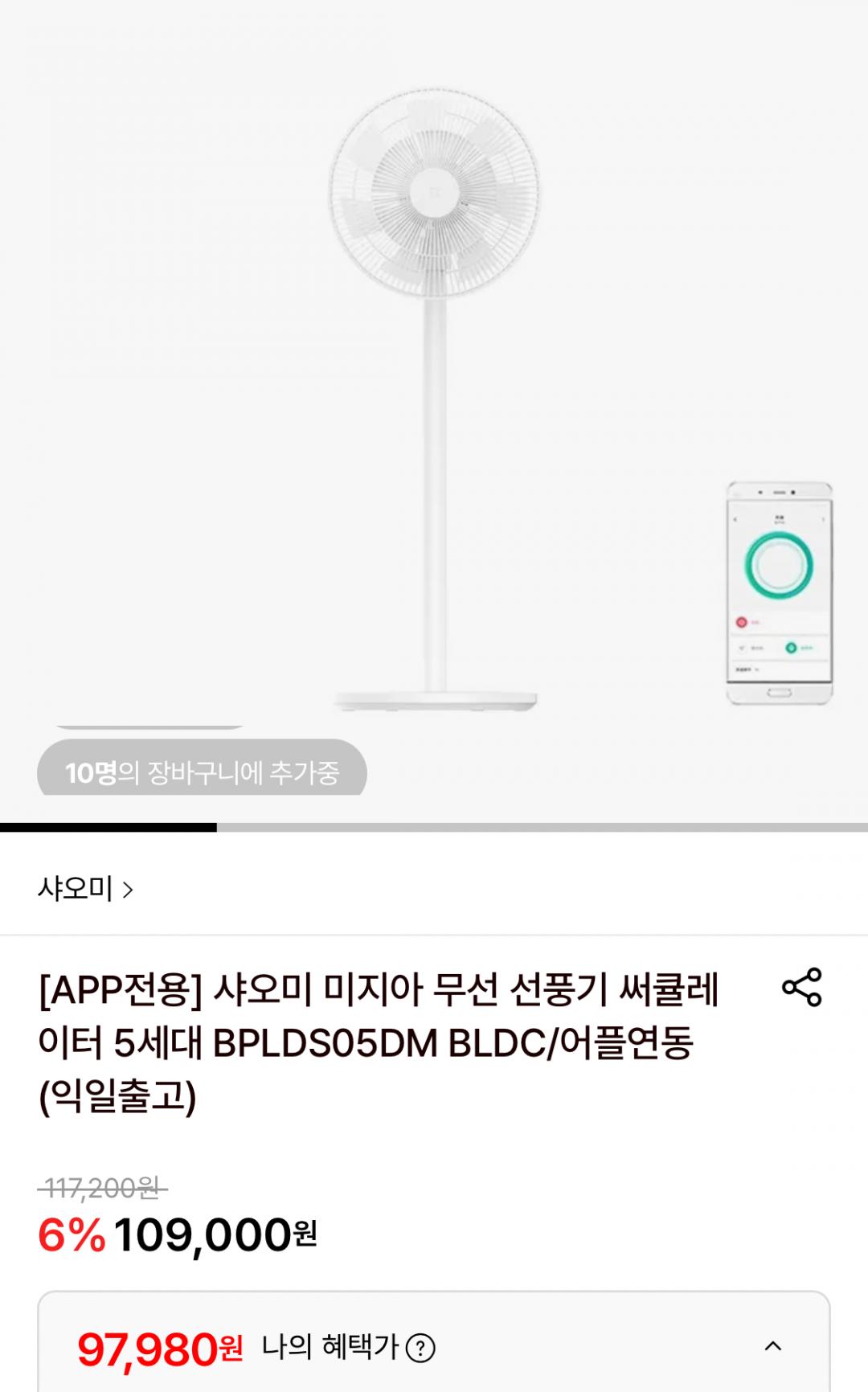 [롯데온] 샤오미 미지아 무선선풍기 써큘레이터 5세대 (익일출고) (97,980원/무료)