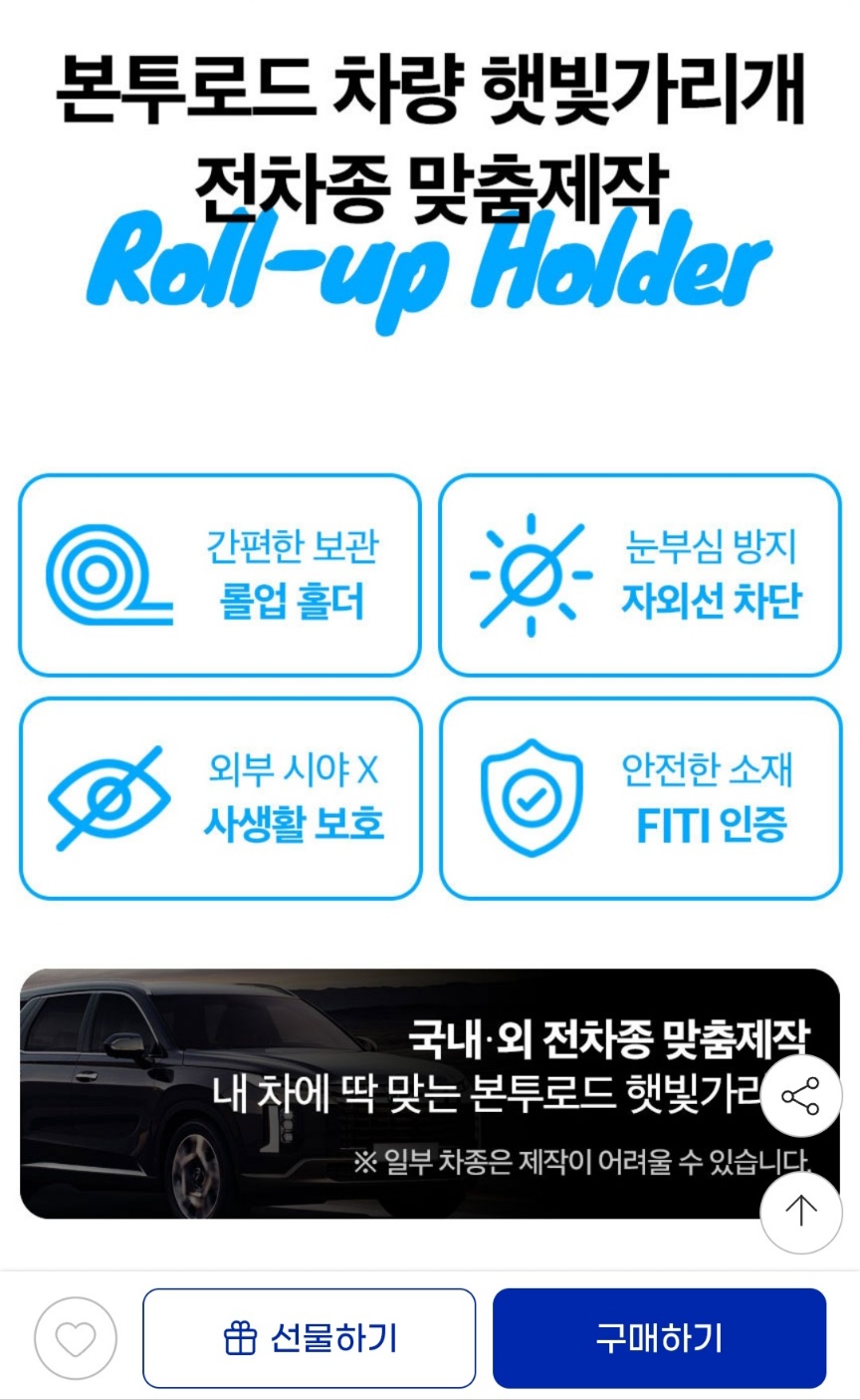 [지마켓] 차량 햇빛가리개 전차종 자외선 UV 눈부심 차단 맞춤제작 (12,750원 / 무료배송)