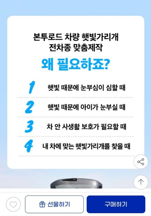 [지마켓] 차량 햇빛가리개 전차종 자외선 UV 눈부심 차단 맞춤제작 (12,750원 / 무료배송) > 국내핫딜