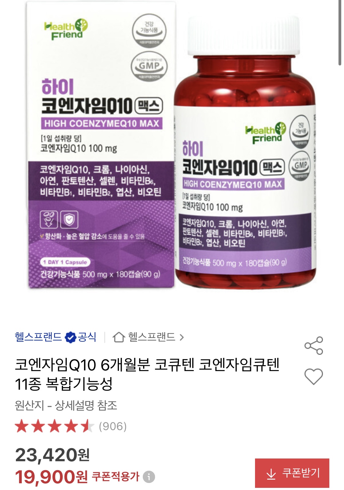 코엔자임Q10 맥스 6개월분 쿠폰 적용시 19,900원 입니다.