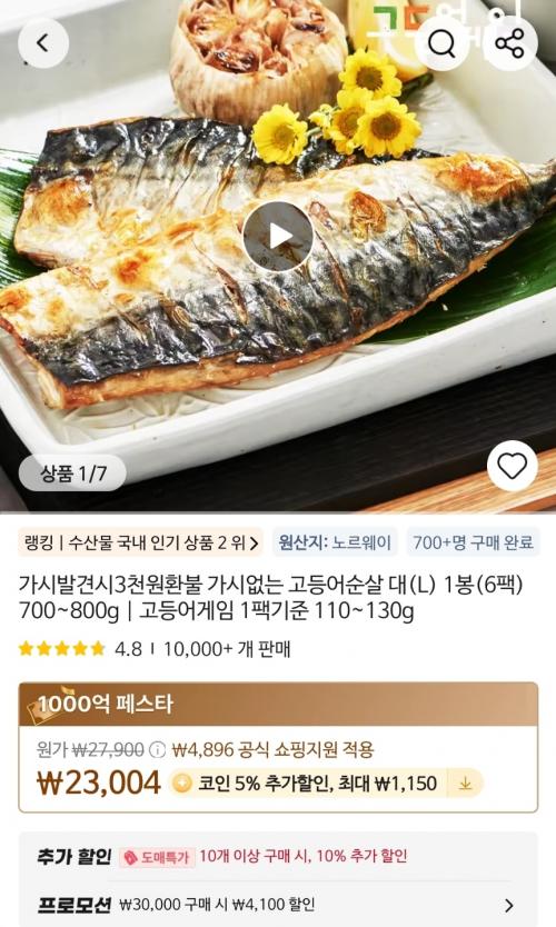 코인 5% 적용시 가격이고 국내배송 알리입니다 가시 제거한 노르웨이 고등어라고 하네요