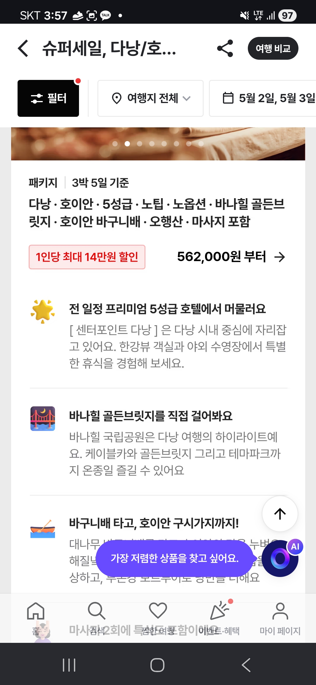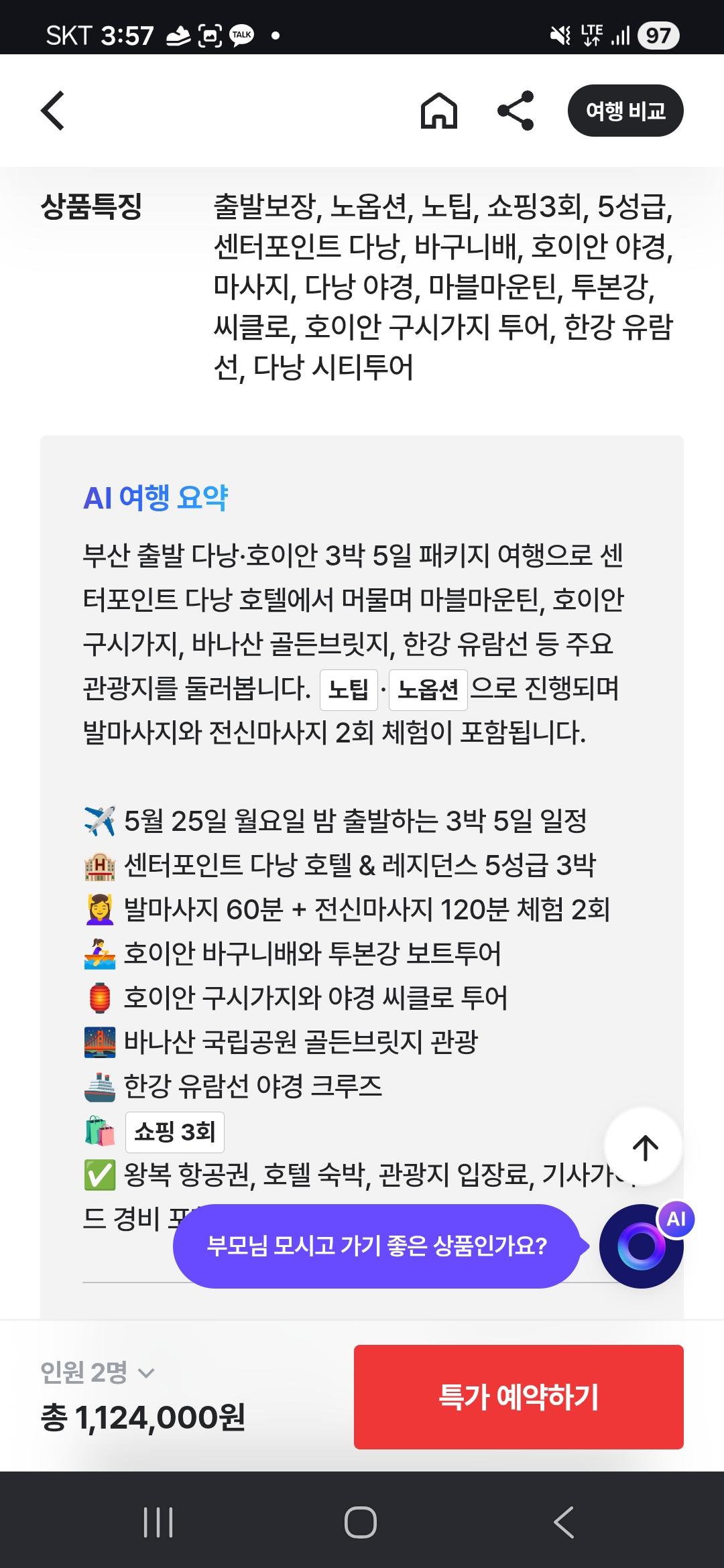 노팁 노옵션이고 숙소도 5성급 센터포인트 다낭이네요.