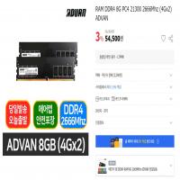 [옥션] ADVAN DDR4 8GB PC4 21300 (54,500원/2,500원)/쿠폰 + 컬쳐적용시 48,000원