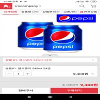 [옥션] 펩시콜라 245ml 24캔 (9,400원/무료배송)