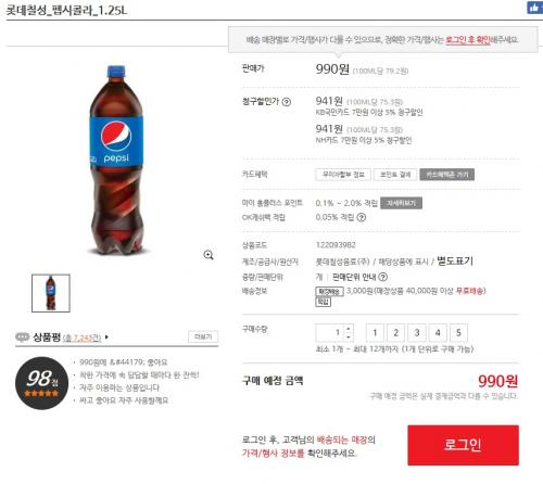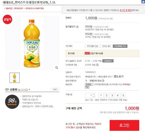 500원에 광동 헛개수 동원 보성녹차 1.5L 1000원에 펩시콜라는 1.25L 1000원에 썬키스트 포도 오렌지 1.5L 1000원