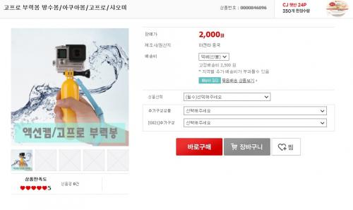 다이소몰에서 액션캠/고프로 부력봉을 2000원에 유료배송으로 팔고있습니다. 물에서 사용시 손에서 이탈되어도