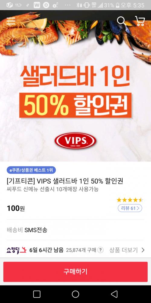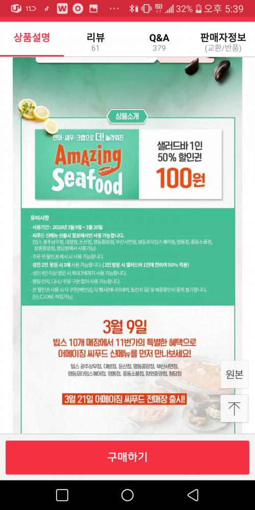 11번가에서 빕스 50프로 할인권을 100원에 무료배송으로 팔고있습니다. 시푸드 선출시 점포에서만 사용가능하다고하며 2인 방문시 1인에한해 50프로 할인 이라고하니 사용가능매장 있으신 분이나 필요하신분은 바로 구매하시면 좋을듯 합니다 ~