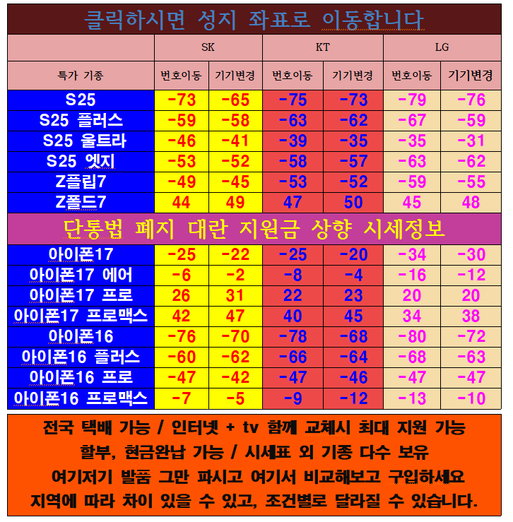 [__오늘의가격표__] #아이폰17 #플립7 #폴드7 #S25 성지!!