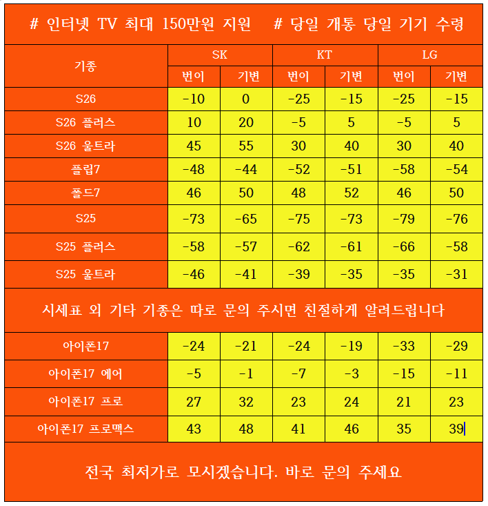 대란 성지 시세표 (S26 지원금 대란) > 통신업체