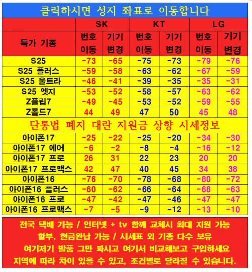 #지원금 대란 시세표 [ 단통법 폐지 ] > 통신업체