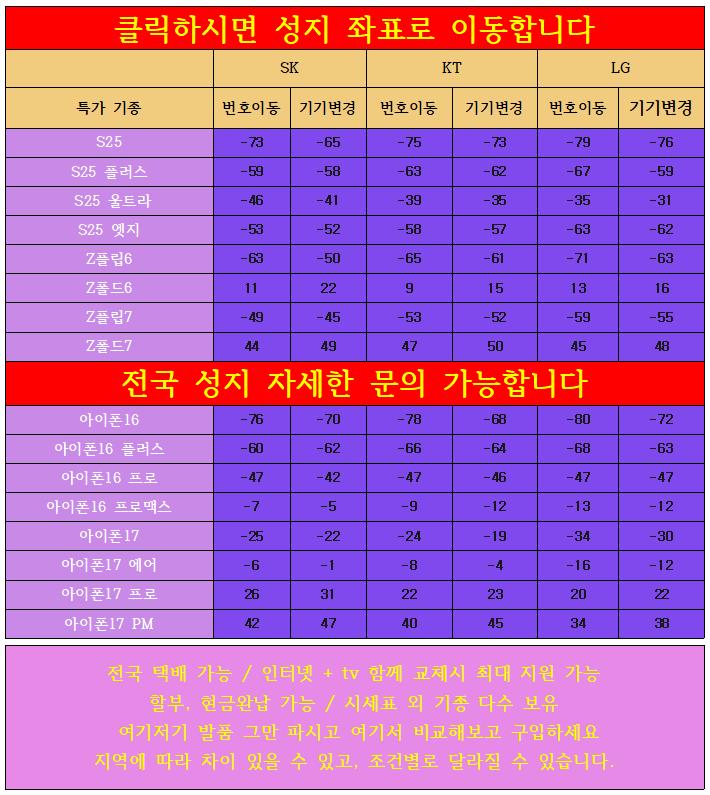 ★ 2/5일 지원금대란 성지시세표 및 좌표 > 통신업체