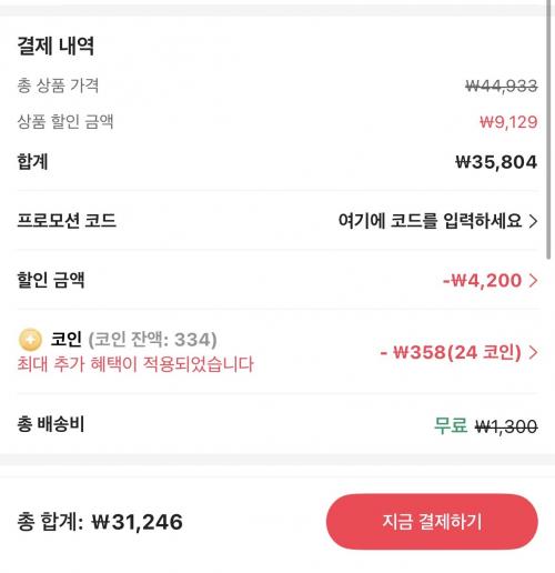 알리앱에서 코인 사용하면 최종금액 나옵니다.