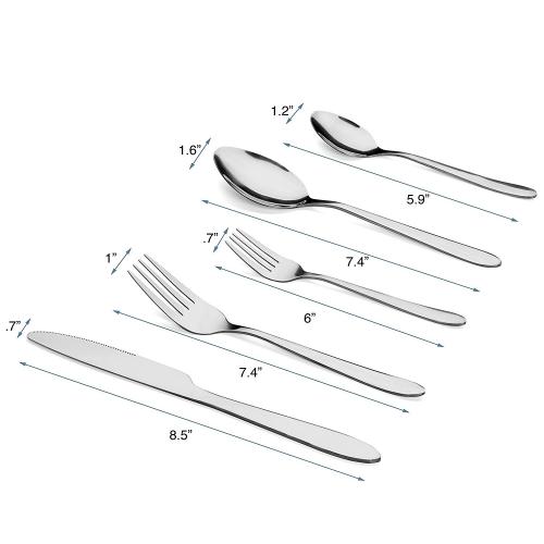 디너포크, 샐러드 포크, 디너스푼, 티스푼, 나이프 각 4개씩 구성.