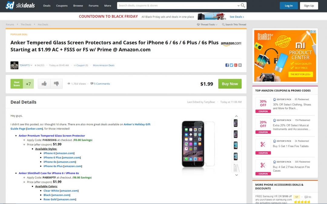 [Amazon] Anker Tempered Glass Screen Protectors and Cases for iPhone 6 / 6s / 6 Plus / 6s Plus ($1.99~/FS) > 해외핫딜