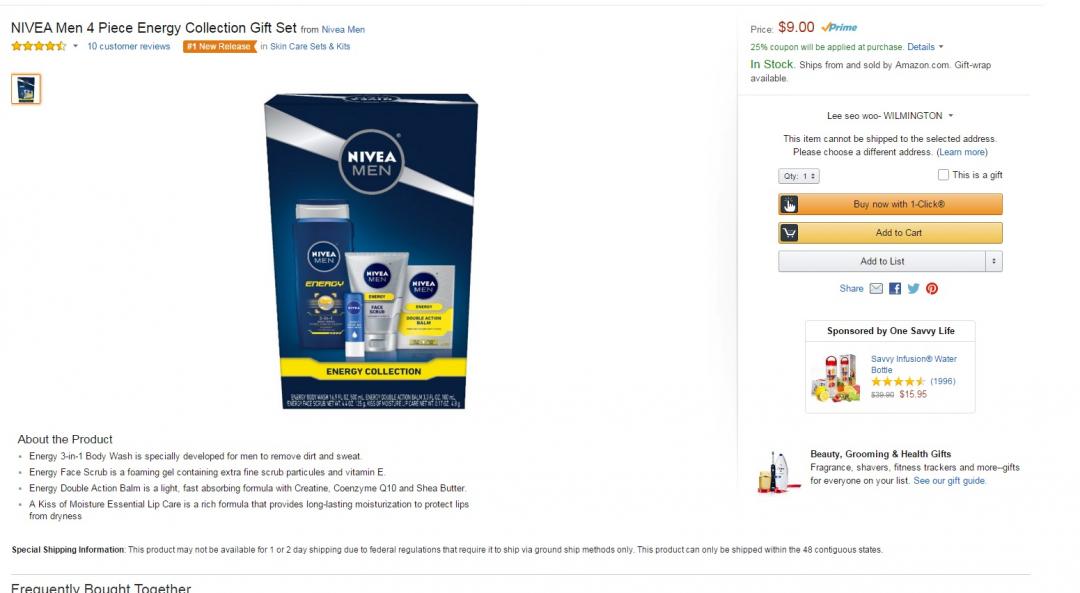 [Amazon] 4-Piece Nivea Men Energy Collection Gift Set ($6.75/Prime FS) > 해외핫딜