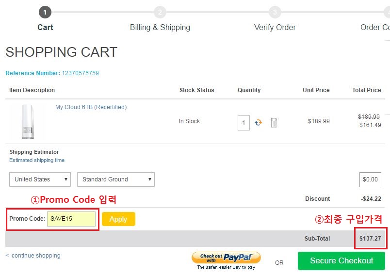 그럼 알려주신 계정으로 로그인해 제가 137.27달라로 카트에 담아놓습니다.