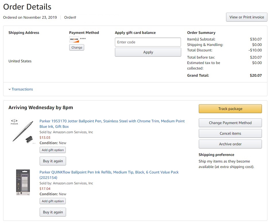 볼펜 두 자루 하면 $15 좀 넘게 나오게 하실 수 있으니 최저가 가깝게 쇼핑하실 수 있을 듯.