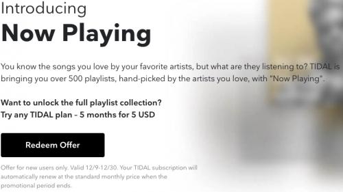 타이달에서 신규회원 대상으로 모든 Plan 5개월 이용료를 5불에 제공하는 프로모션을 진행 중입니다.