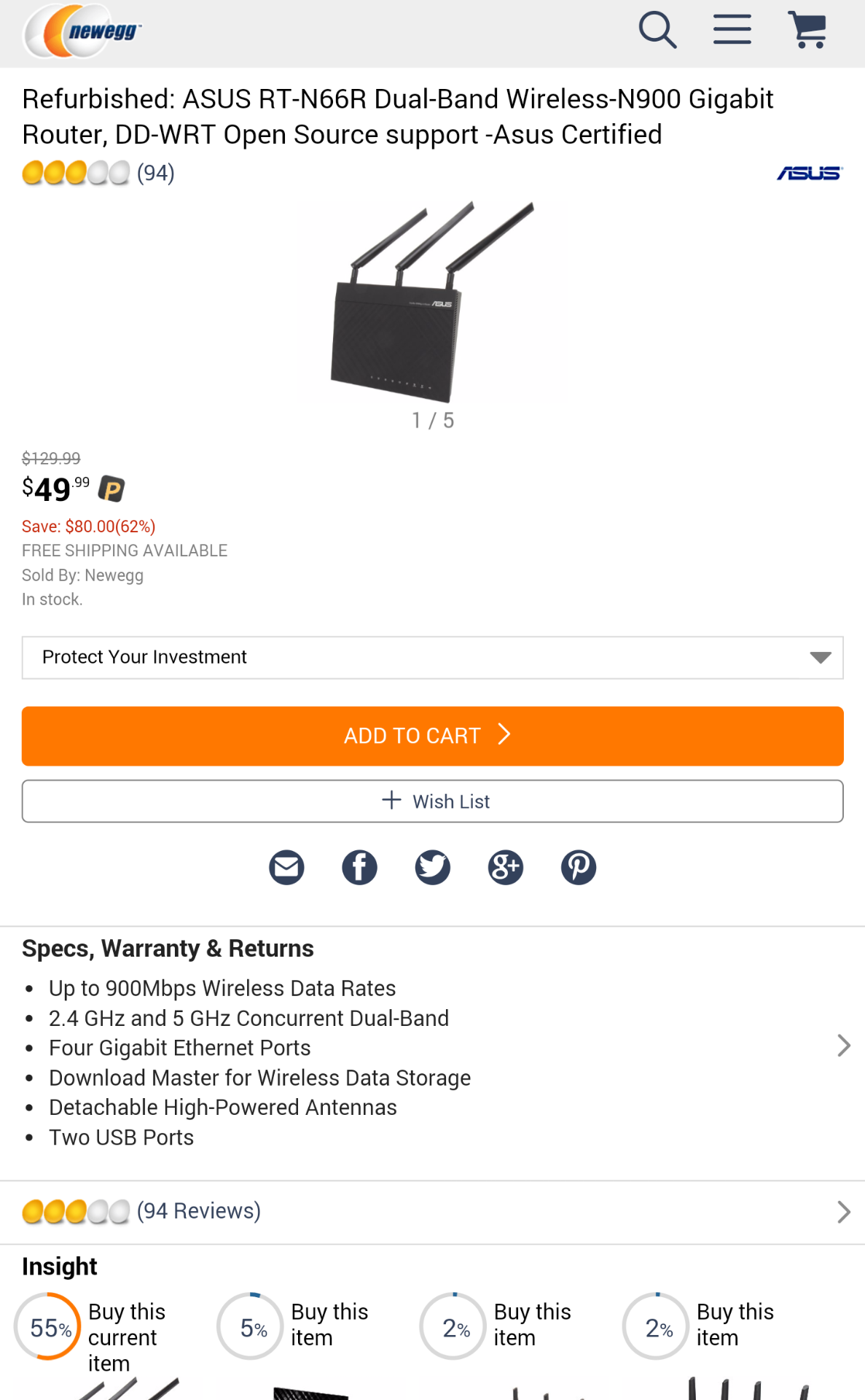 [Newegg] ASUS RT-N66R 리퍼(49.99/fs)
