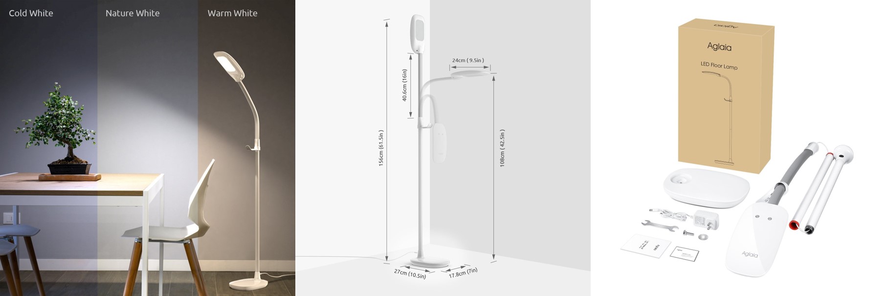 디밍이 4단계, 1자로 폈을때 총 길이는 61.5인치, 헤드폰 걸이같은것도 추가되었네요