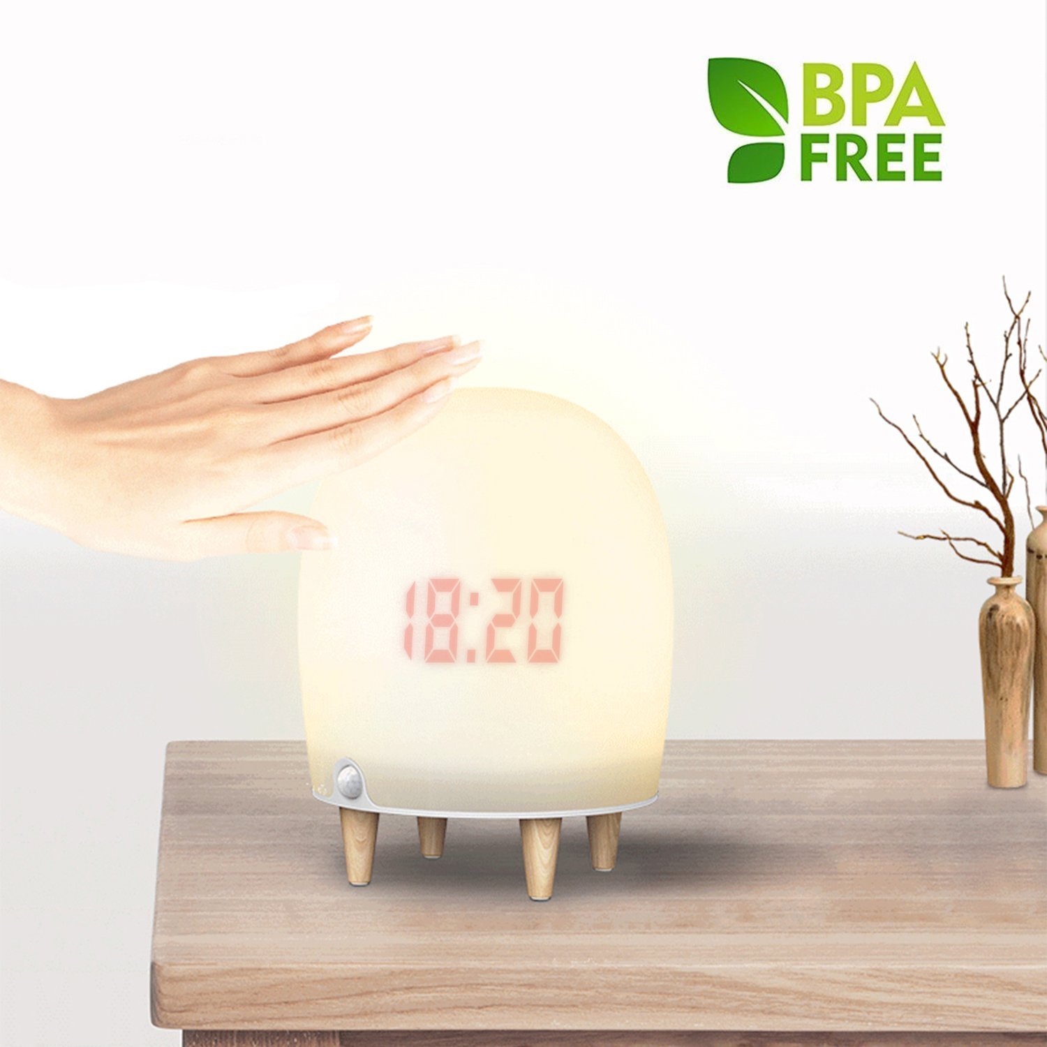 디밍 가능한 터치식 나이트라이트에 시간 표시가 되며,