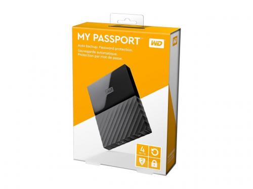 웨스턴 디지털의 2.5" USB 3.0 외장하드, 마이 패스포트 4TB 블랙컬러 모델입니다.