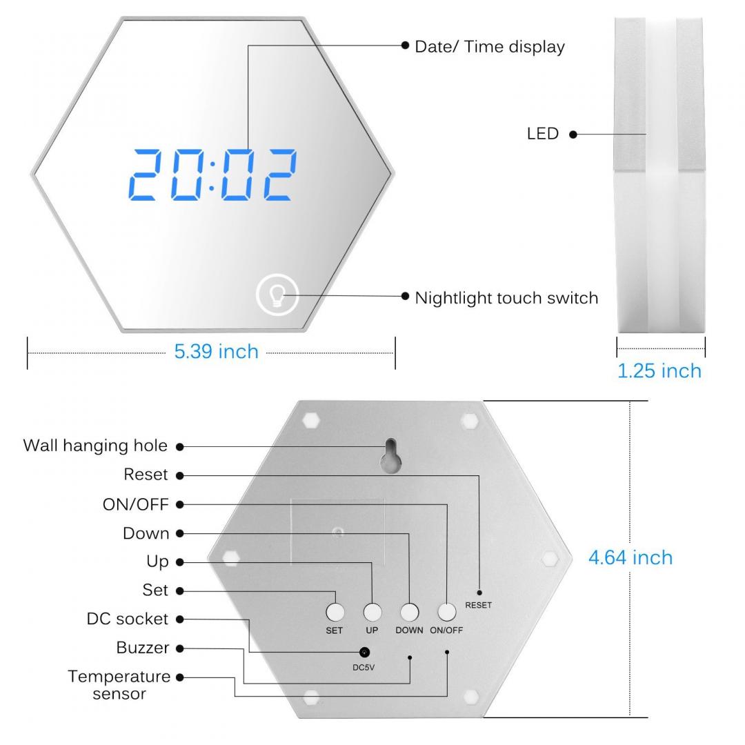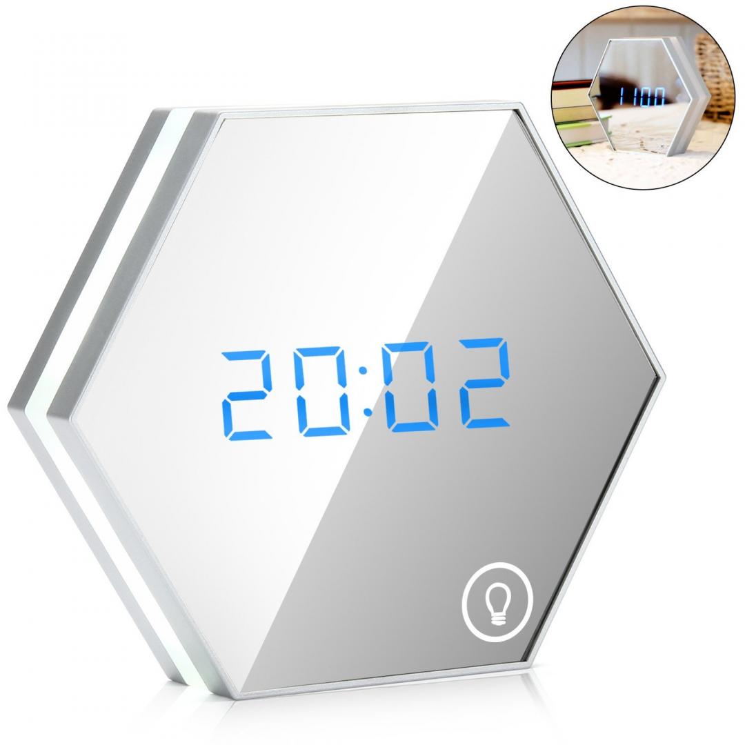 LED 알람시계 + 거울 + 나이트라이트 기능이 있는 제품입니다.