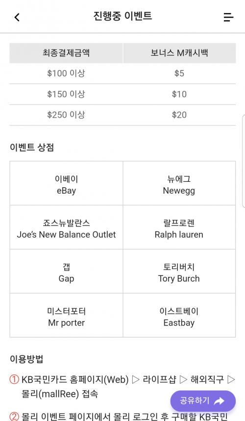 추가로 국민카드 구매금액당 캐시백 이벤트 참여하시면 더 좋습니다