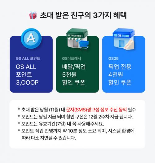 우리동네 GS앱에서 친구 한 명 초대하면 3,000P 준대요