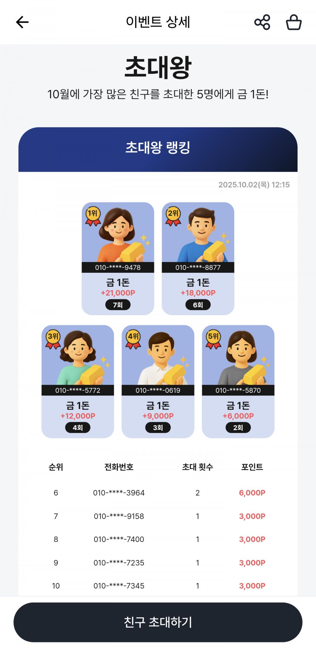초대 많이 한 5명한테는 금 1돈까지 준다네요~!