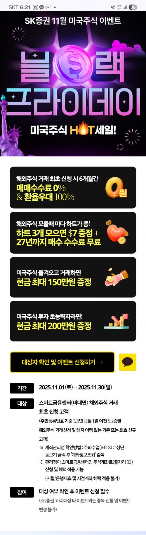 SK증권 11월 블랙프라이데이 이벤트로 미국주식 혜택 많네요~