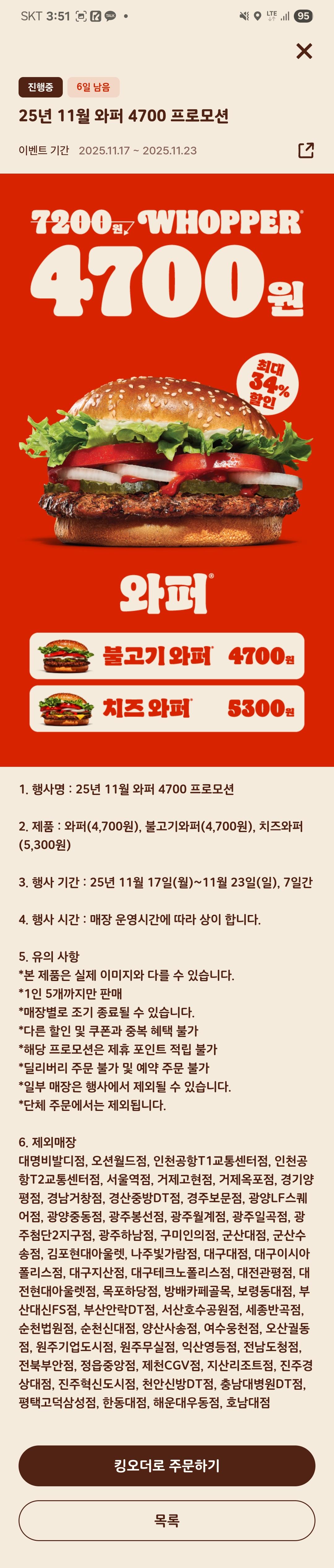 [버거킹] 와퍼 4,700원 할인 > 이벤트게시판