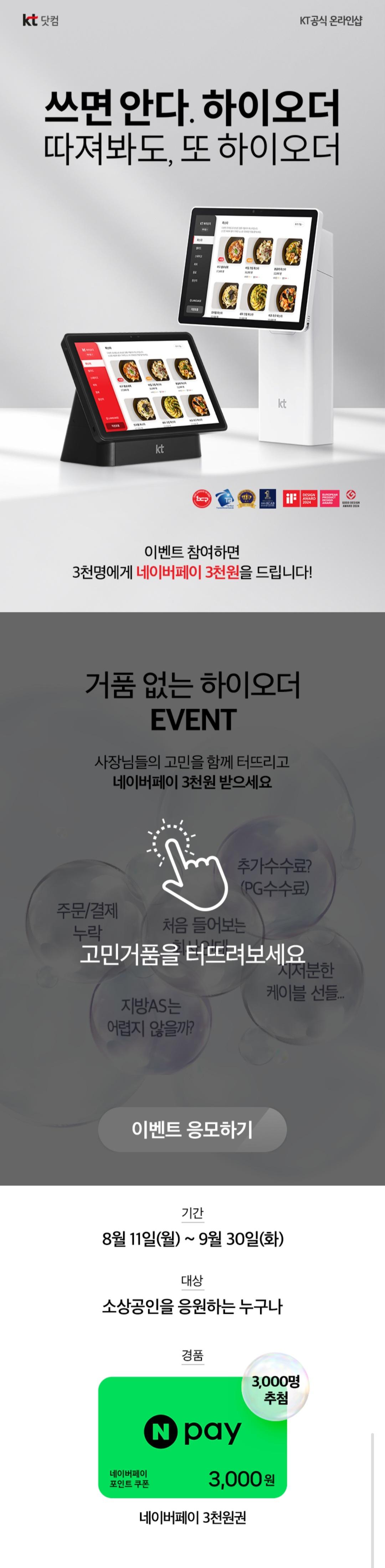 [KT] 하이오더 경품 이벤트 (네이버페이 3천원권) > 이벤트게시판