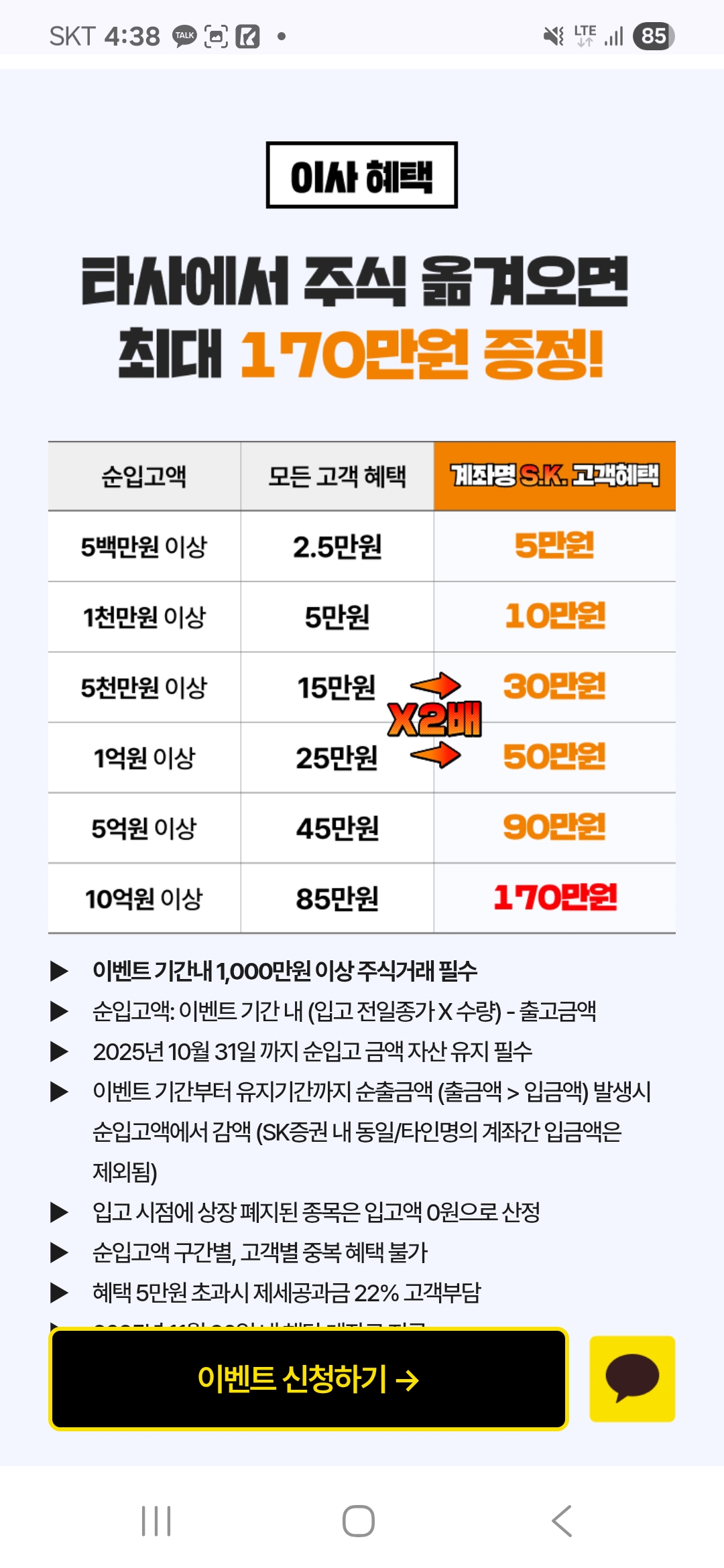8월 SK증권 신규고객 혜택 2배 이벤트 하네요~
