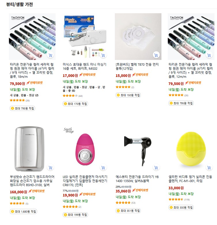 일상에서 편리함과 아름다움을 동시에 챙길 수 있는 뷰티·생활 가전이 이번 MD’s PICK 행사에 특별가로 마련되었습니다. 타키온 전문가용 세라믹 컬링 아이롱은 빠르고 손쉬운 스타일링을 도와주며, 미싱스 휴대용 핸드 미니 미싱기는 간단한 수선과 DIY 작업에 유용합니다. 또한 트윈버드 먼지봉투와 같은 생활 필수품도 합리적인 가격에 구매할 수 있어 가정에 꼭 필요한 아이템들을 저렴하게 마련할 기회입니다.