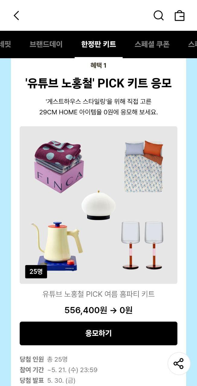 [29CM] 유튜브 노홍철 PICK 여름 홈파티 키트 0원래플 & 30프로 쿠폰 > 이벤트게시판