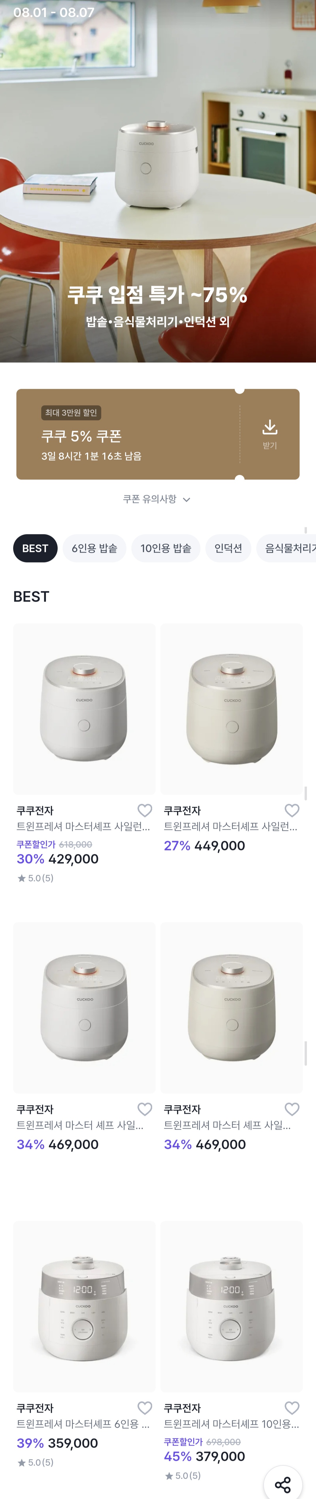 쿠쿠 퀸잇에서 할인 많이 하고 있네요