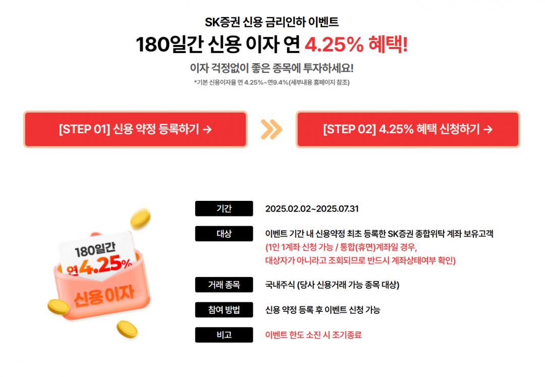 [SK증권] 신용 금리인하 이벤트! ( 180일간 신용 이자 연 4.25% 혜택 )