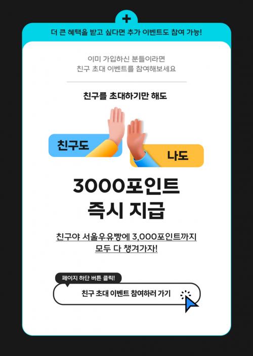 이미 회원인 사람은 친구초대 하면 본인이랑 친구 둘 다 3000 포인트 줍니다