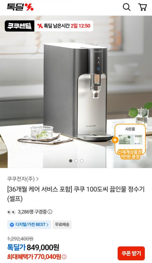 [카카오톡딜] 쿠쿠 정수기 구매하고 신세계 상품권까지 챙기세요~ > 이벤트게시판